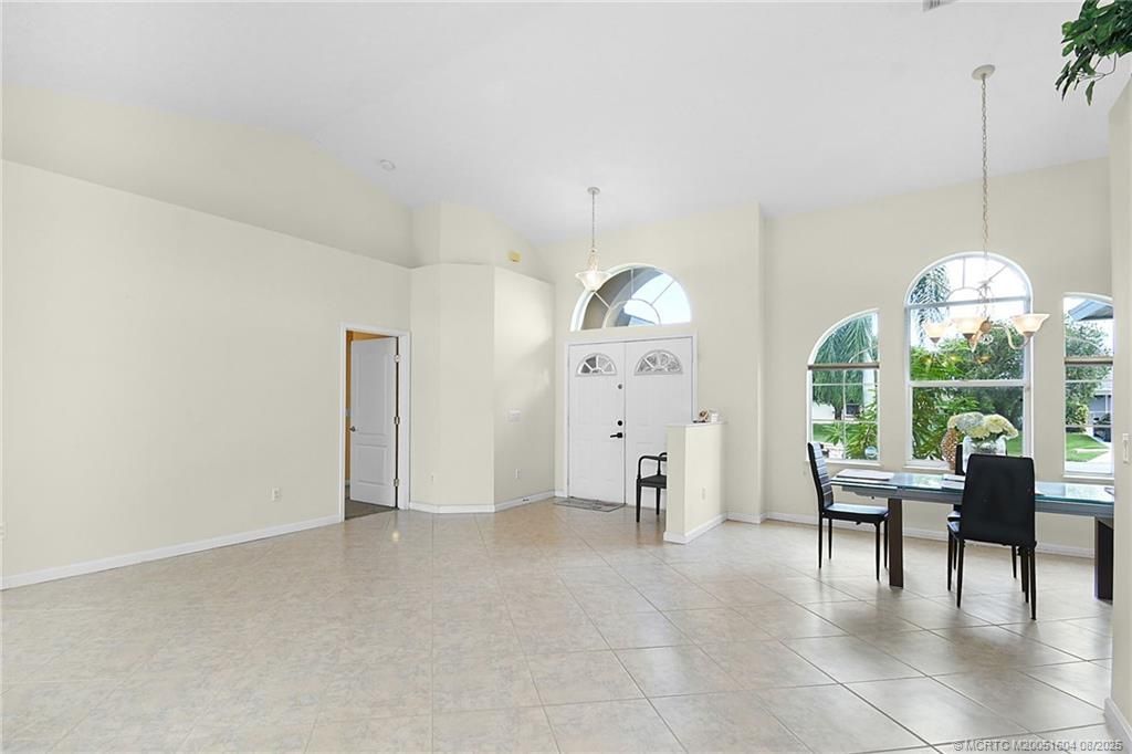 Ideal family home in a prime location! This 4BR/2.5BA CBS home offers 2,186 sq ft under air (3,129 total) on a 0.48-acre lot with cathedral ceilings and an open floor plan. Features include formal living & family rooms, formal dining, French entry doors, spacious kitchen with wood cabinetry, granite counters, and workstation. New roof (2021) and storm shutters for added peace of mind. The primary suite offers lanai access, his & her walk-in closets, and a luxurious bath with Roman tub, double si...Ideal family home in a prime location! This 4BR/2.5BA CBS home offers 2,186 sq ft under air (3,129 total) on a 0.48-acre lot with cathedral ceilings and an open floor plan. Features include formal living & family rooms, formal dining, French entry doors, spacious kitchen with wood cabinetry, granite counters, and workstation. New roof (2021) and storm shutters for added peace of mind. The primary suite offers lanai access, his & her walk-in closets, and a luxurious bath with Roman tub, double sinks, granite counters, separate shower, and private toilet room. Also includes 3 guest bedrooms, guest & cabana baths, laundry room with washer & dryer, 2-car garage, screened lanai, open patio, and a large backyard with fruit trees and room for a pool. Conveniently located between I95 and FL Turnpike for easy commutes and just North of Becker road.