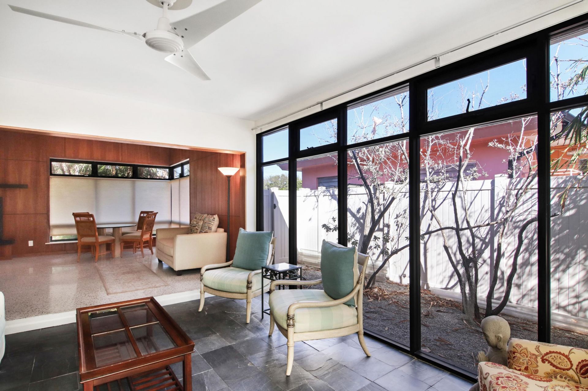 OVERSIZED PROPERTY & Steps Away from the WATER sits this MID CENTURY MODERN HOME in College Park. GOURMET KITCHEN with Cooking Gas professional appliances, Baths ALL REMODELED, BEAUTIFUL ENCLOSED GLASS FLORIDA Room, Fireplace, Newer Windows, TERRAZZO Flooring, Full set of Hurricane Shutters, Custom Built-ins in bedrooms
