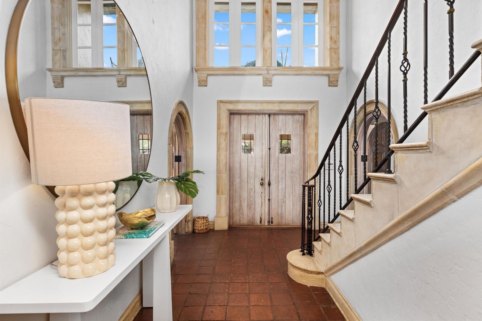 Fabulous, In-Town Mediterranean compound on the Ocean Block of Brazilian Avenue. With 8BR/8.2BA, this gorgeous estate features well-scaled rooms, great bones, and sun-filled interiors. The home features a rich blend of original charm and thoughtful updates. Beautiful pecky cypress ceilings, arched doorways, and decorative millwork throughout. Situated on the South Side of the street on a 17,120+/- square foot lot offering exceptional privacy with lush tropical landscaping. Gourmet eat-in kitchen...Fabulous, In-Town Mediterranean compound on the Ocean Block of Brazilian Avenue. With 8BR/8.2BA, this gorgeous estate features well-scaled rooms, great bones, and sun-filled interiors. The home features a rich blend of original charm and thoughtful updates. Beautiful pecky cypress ceilings, arched doorways, and decorative millwork throughout. Situated on the South Side of the street on a 17,120+/- square foot lot offering exceptional privacy with lush tropical landscaping. Gourmet eat-in kitchen with large island and top-of-the-line appliances leads to formal dining room. Adjacent breakfast room features arched French doors with views of the garden. Formal living room with gorgeous, beamed ceilings and fireplace. Expansive Primary Wing complete with office, dressing area, large bath with dual sinks, and multiple fireplaces. Numerous spacious guest suites with en-suite bathrooms. Beautiful 2BR/2BA guest house includes stunning wet bar and living room with accordion doors for seamless indoor-outdoor living. Resort-style exteriors include columned covered loggia, serene courtyards, spa, and large swimming pool.