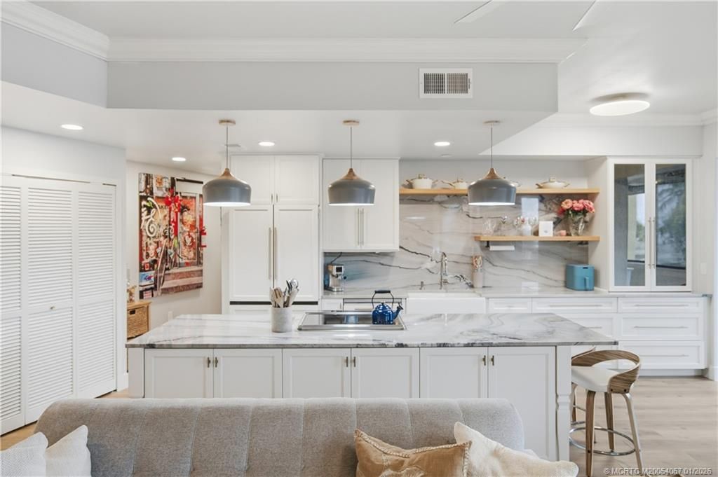 Enjoy elevated downtown Stuart riverfront living in this beautifully renovated 2 bedroom 2 bath condo with sweeping views of the St Lucie River. Located in the gated, marina front community of Four Winds this 2nd floor unit offers approximately 1,500 sq ft of refined living space, ideal for full time or seasonal, lock and leave living. Completely redesigned in 2022, the interior features quartz countertops, custom solid wood cabinetry, spa style baths, upgraded fixtures, and designer finishes th...Enjoy elevated downtown Stuart riverfront living in this beautifully renovated 2 bedroom 2 bath condo with sweeping views of the St Lucie River. Located in the gated, marina front community of Four Winds this 2nd floor unit offers approximately 1,500 sq ft of refined living space, ideal for full time or seasonal, lock and leave living. Completely redesigned in 2022, the interior features quartz countertops, custom solid wood cabinetry, spa style baths, upgraded fixtures, and designer finishes throughout. The enclosed impact glass balcony allows year round enjoyment of river views. Additional highlights include elevator access from ground level, assigned covered parking, and resort style amenities including pool, clubhouse, tennis, pickleball, and boating with slips available. Bike or walk a short distance to all things downtown Stuart - Rockin Riverwalk Stage, Sunday Stuart Green Market, Lyric Theater, delicous cafes, and adorable shops. The lifestyle of your dreams awaits you here!