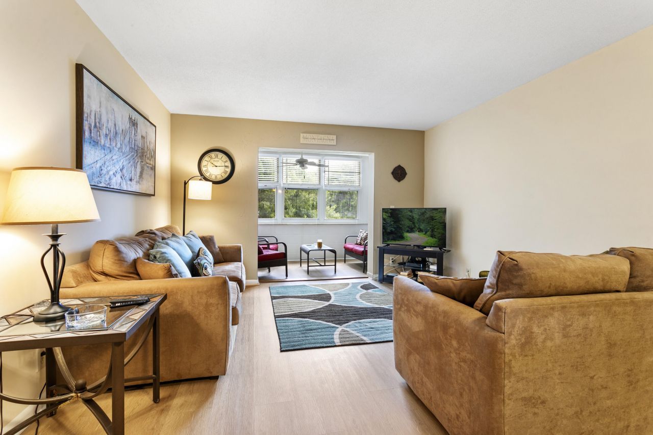 Move-in ready 2-bed, 2-bath condo near the beach! This turnkey home features hurricane windows, wood flooring throughout, and fresh carpet in the bedrooms. The spacious living area includes an extended sitting room and dining space, while the fully equipped kitchen has all the essentials. The primary bedroom boasts two closets, including a walk-in, with a step-in shower in its en-suite bath. The guest bedroom also has a walk-in closet, and the guest bath includes a tub. Newer AC and water heater...Move-in ready 2-bed, 2-bath condo near the beach! This turnkey home features hurricane windows, wood flooring throughout, and fresh carpet in the bedrooms. The spacious living area includes an extended sitting room and dining space, while the fully equipped kitchen has all the essentials. The primary bedroom boasts two closets, including a walk-in, with a step-in shower in its en-suite bath. The guest bedroom also has a walk-in closet, and the guest bath includes a tub. Newer AC and water heater. Located in an active adult community with pools, tennis/pickleball, a clubhouse, fitness center, movie night, theater and more! Monthly fee includes basic cable, water, sewer, trash removal and exterior insurance.