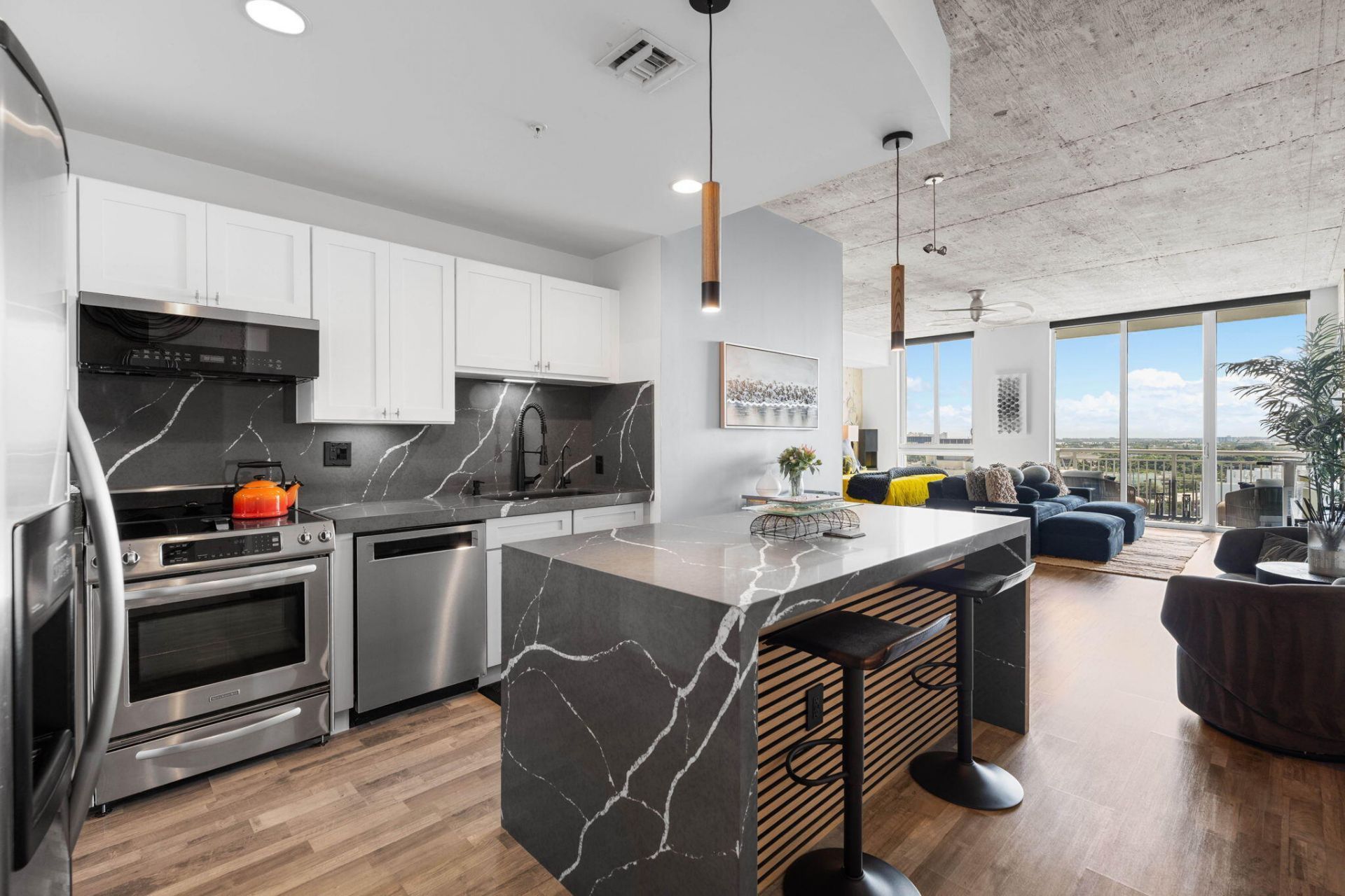 RARELY available TURNKEY GEM! 1BED/1BA w/ Triple Water Views of Ocean, Pool, & Clear Lake!! Most Popular & Largest 1 Bed Floor Plan at the Highly Desired Edge Condo. Spacious & Beautifully FURNISHED with all designer furniture-custom Restoration Hardware. INVESTORS DREAM or your dream home! Private Balcony. 12ft ceilings. Stylish Exposed Concrete. BRAND NEW GORGEOUS FULLY GUT RENOVATED throughout. W/D in unit. Rent right away, up to 12x per year. Brand New Construction next door and major pla...RARELY available TURNKEY GEM! 1BED/1BA w/ Triple Water Views of Ocean, Pool, & Clear Lake!! Most Popular & Largest 1 Bed Floor Plan at the Highly Desired Edge Condo. Spacious & Beautifully FURNISHED with all designer furniture-custom Restoration Hardware. INVESTORS DREAM or your dream home! Private Balcony. 12ft ceilings. Stylish Exposed Concrete. BRAND NEW GORGEOUS FULLY GUT RENOVATED throughout. W/D in unit. Rent right away, up to 12x per year. Brand New Construction next door and major plans for ''Transit Village'', centered around The Edge. Fully funded reserves, no pending or special assessments. Recently remodeled circular driveway, fitness center, repainting/maintenance of entire building exterior complete. 24 hr concierge, resort style pool deck. Pets welcome. Brand new Bosch AC 2 PARKING SPACES & STORAGE UNIT!!!!!!
