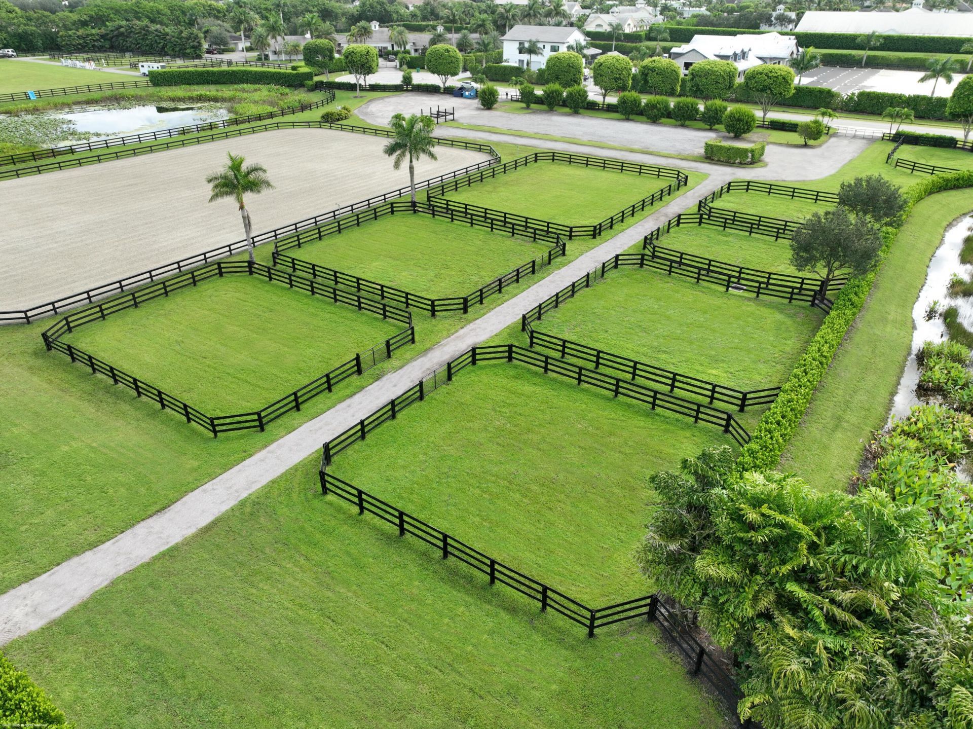 Rare 4.38 acre parcel located within the prestigious gated community of Grand Prix Village South. This stunning property is beautifully landscaped and features a state-of-the-art all weather arena, 8 lush grass paddocks and grooming/ wash stalls. 3899 Shutterfly Way offers the ideal canvas to build your dream equestrian stable in an elite location. Westerly views and easy access to both WEF show grounds and the scenic trails of Palm Beah Point make this a very special opportunity.