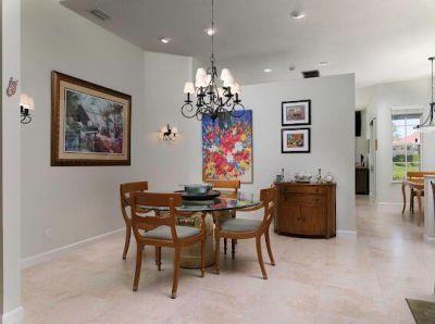 Welcome to this 2,023 sq ft CBS single-family home, featuring 3 bedrooms and 3 bathrooms in the prestigious Masters at Eagleton neighborhood of PGA National. The bright living room is filled with natural light from sliding glass doors and recessed ceiling lighting, complemented by off-white walls and neutral stone-look tile. Adjacent, the formal dining area offers a chandelier, wall sconces, and recessed lighting, seamlessly connecting to the open-concept living space. The kitchen boasts linen-t...Welcome to this 2,023 sq ft CBS single-family home, featuring 3 bedrooms and 3 bathrooms in the prestigious Masters at Eagleton neighborhood of PGA National. The bright living room is filled with natural light from sliding glass doors and recessed ceiling lighting, complemented by off-white walls and neutral stone-look tile. Adjacent, the formal dining area offers a chandelier, wall sconces, and recessed lighting, seamlessly connecting to the open-concept living space. The kitchen boasts linen-toned paneled cabinets, granite countertops, a neutral mosaic glass tile backsplash, black appliances, a prep island with sink and dishwasher, and a sunny breakfast nook in a bay window. The cozy family room overlooks tranquil lake views and provides access to the covered patio. A spacious office with en-suite bath offers flexibility as a guest suite. The primary suite features a seating area, walk-in closet, and private en-suite with dual vanities, Roman tub, glass-enclosed shower, and water closet. The guest bedroom is bright and comfortable, offering generous closet space and perfect for welcoming visitors. Outdoor living is enhanced by a covered side patio off the living and family rooms and an open back patio off the primary bedroom, perfect for relaxing or entertaining while enjoying serene lake views.
