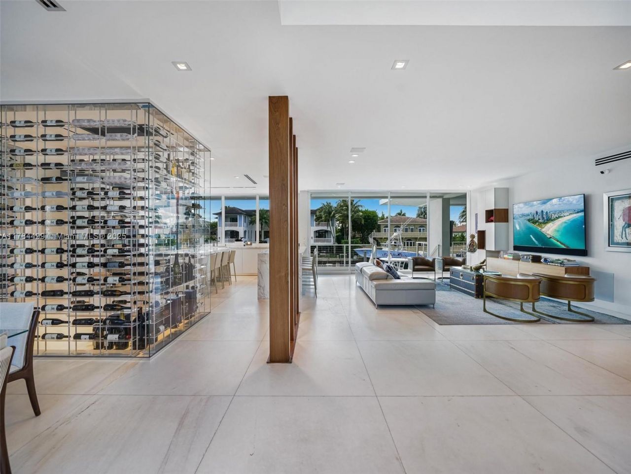 Waterfront luxury reimagined with 100 of frontage & a 15,000 lb boat lift for up to a 40 vessel. This 3-story, 9,911 SF smart home blends sleek Italian design with cutting-edge tech. The first floor features a private staff suite, gym, steam spa, staff kitchen, bar, full bath, and a 2,500-bottle wine cellar. The second level stuns with 48x48 marble floors, chefs kitchen with Miele, Subzero, Italian glass cabinetry, 2 dishwashers, 325-bottle wine cellar, plus office, laundry, and ensuite bedrooms...Waterfront luxury reimagined with 100 of frontage & a 15,000 lb boat lift for up to a 40 vessel. This 3-story, 9,911 SF smart home blends sleek Italian design with cutting-edge tech. The first floor features a private staff suite, gym, steam spa, staff kitchen, bar, full bath, and a 2,500-bottle wine cellar. The second level stuns with 48x48 marble floors, chefs kitchen with Miele, Subzero, Italian glass cabinetry, 2 dishwashers, 325-bottle wine cellar, plus office, laundry, and ensuite bedrooms. Upstairs, the primary suite is joined by two additional ensuite bedrooms and a second living room. Fully automated smart home with Control4, 19 security cameras, Trane A/C, ESW impact windows, electric blinds, custom closets, dual kitchens, dual laundries, and A/C 2-car garage. Open Bay Views!