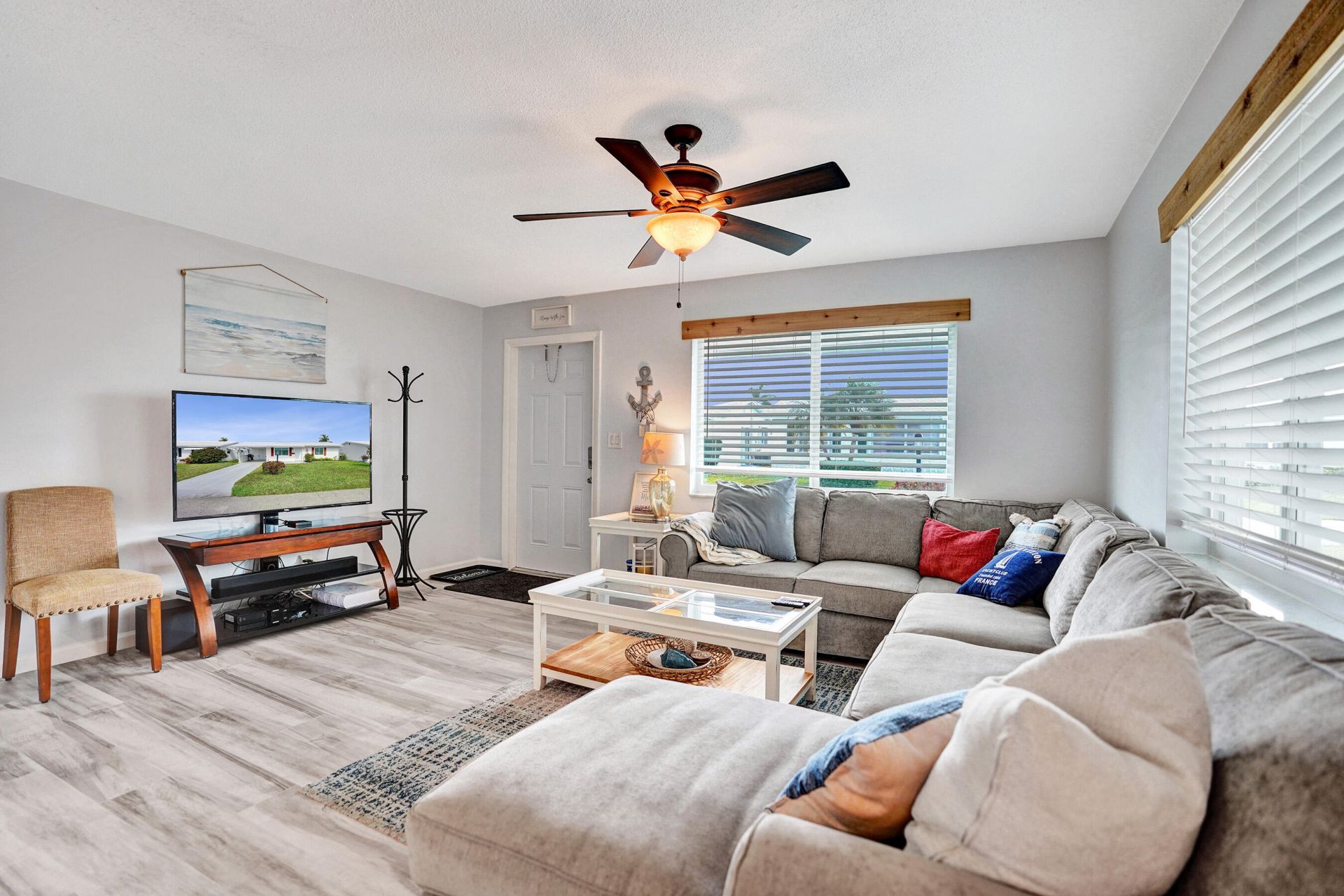 Welcome to Leisureville, a fabulous community where the name truly matches the lifestyle--relaxed, easy, and carefree, yet wonderfully active. Leave your worries behind and enjoy this beautifully remodeled, move-in-ready home with major updates already completed.The gorgeous, open-concept kitchen flows seamlessly into the dining and living areas and features quartz countertops, crisp white cabinetry, stainless steel appliances, and recessed lighting--perfect for both entertaining and everyday li...Welcome to Leisureville, a fabulous community where the name truly matches the lifestyle--relaxed, easy, and carefree, yet wonderfully active. Leave your worries behind and enjoy this beautifully remodeled, move-in-ready home with major updates already completed.The gorgeous, open-concept kitchen flows seamlessly into the dining and living areas and features quartz countertops, crisp white cabinetry, stainless steel appliances, and recessed lighting--perfect for both entertaining and everyday living. Pretty laminate flooring throughout enhances the home's fresh, inviting decor.The addition of the Florida room has been thoughtfully incorporated into the living space, offering great flexibility. It makes an ideal home office, hobby room, or guest space. The two bedrooms are positioned on opposite ends of the home, providing excellent privacy for both owners and visitors. Enjoy peace of mind with a metal roof (2023) and impact windows, adding storm protection, energy efficiency, and long-term value. Outside, the smartly designed carport accommodates your vehicle and opens to a spacious storage room that also serves as a laundry area and workshop. Leisureville Amenities include free par-3 golf, three heated pools, and a lively clubhouse that's always fun and exciting offering a truly active lifestyle with endless social opportunities. This is Florida living done right easy, updated, and full of enjoyment.